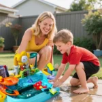 Safety for Young Explorers: This water play toys constructed from safe plastic materials with rounded edges and reinforced seams, this water table meets rigorous safety standards. Its lightweight yet sturdy design ensures stability during active play, making it a trusted outdoor toy for ages 1-3.