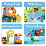 Educational Interactive Water Circulation System: The play sink equipped with a child-powered sunflower faucet and cascading slide, this water table features a manual pump switch to simulate real water flow. Perfect for sensory learning, it introduces toddlers to cause-and-effect relationships and water conservation concepts through hands-on play.