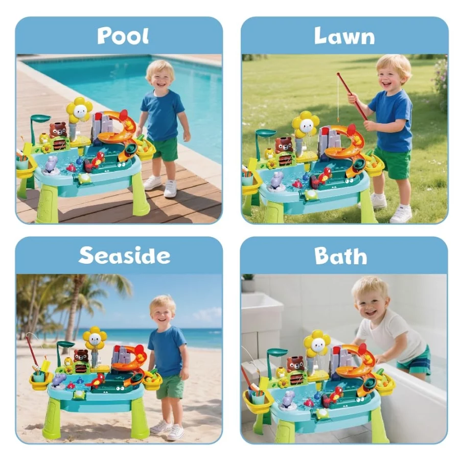Safety for Young Explorers: This water play toys constructed from safe plastic materials with rounded edges and reinforced seams, this water table meets rigorous safety standards. Its lightweight yet sturdy design ensures stability during active play, making it a trusted outdoor toy for ages 1-3.