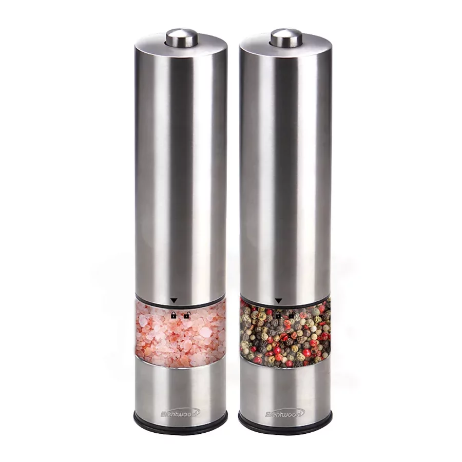 These are great in concept and look nice but I don’t like having to remove the bottom lid. I prefer the kind you turn upside down. These require you to remove a lid and press a button. They work well- just not as easy to use while cooking as other styles. They hold a charge for a long time. They look nice!