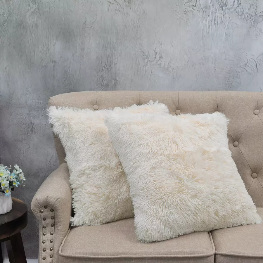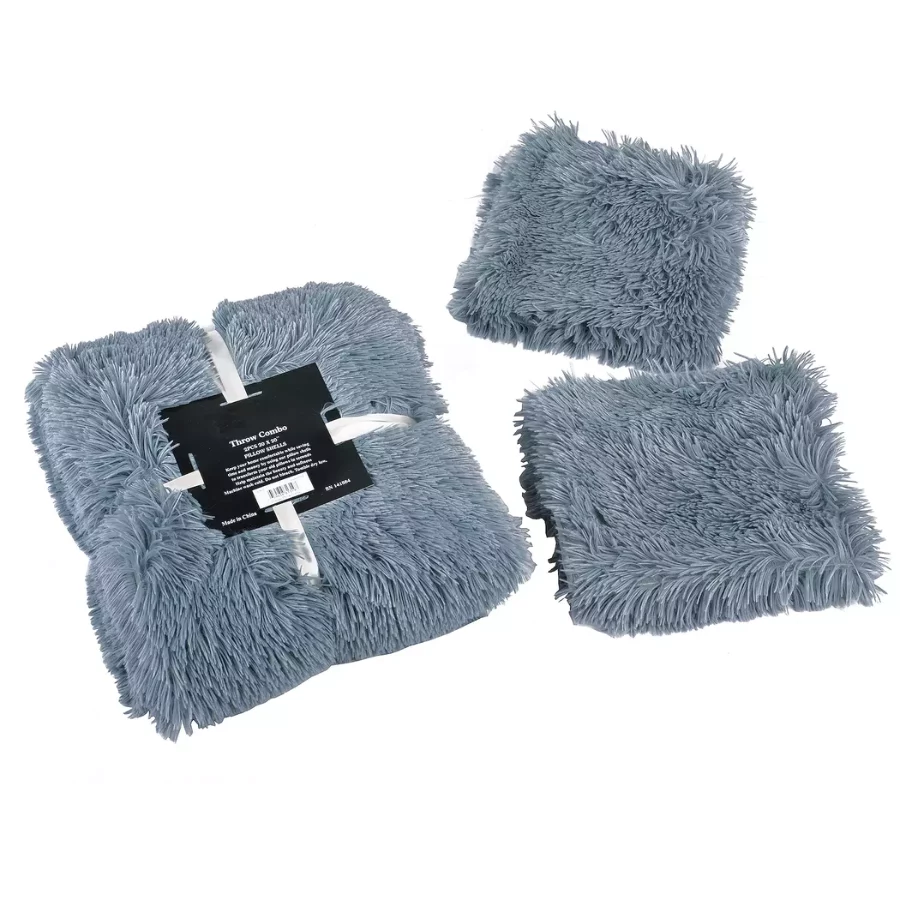 Shaggy Faux Fur Throw Blanket with 2 Pillow Covers – Cozy Decorative Set for Sofa or Bedroom