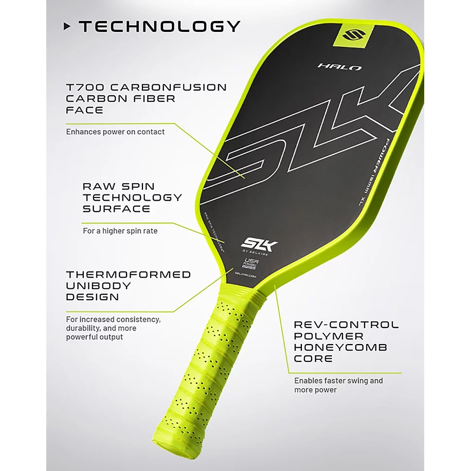 Ready to hit harder and play with confidence? The SLK Halo Power Max combines power, spin, and forgiveness in one easy-to-use paddle. Grab yours today and dominate every rally!