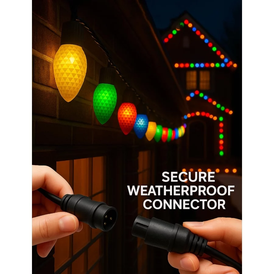 Weatherproof Outdoor Christmas Lights C9 for Houses These outdoor christmas lights c9 are IP65 rated for protection against rain, frost, and dust. Reinforced wires and sealed sockets ensure long-term reliability on rooftops, window trims, or fences. An ideal option for smart house christmas lights outdoor installations.