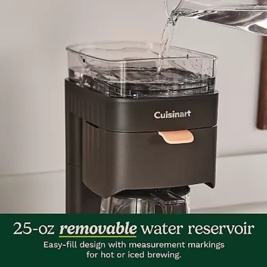 • Removable 25 oz. Water Reservoir: Includes measurement markings for Hot or Over Ice Brewing options, ensuring accurate fills.