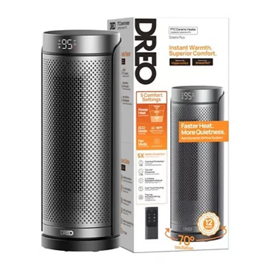 - ETL-certified safety with V0 flame-retardant materials and multiple features, including tip-over protection, overheat protection, 12-hour timer, and 24-hour automatic power off