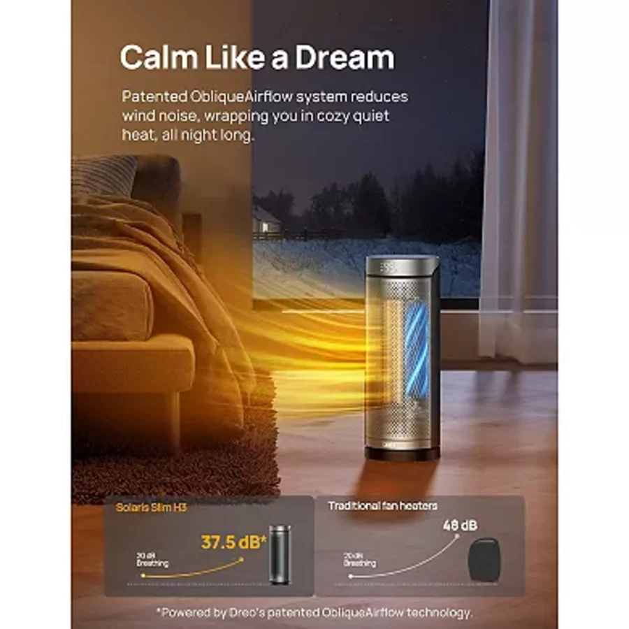 - Quiet operation at 40dB (nearly silent like a library); oblique airflow technology makes it 12% quieter than traditional heaters for restful sleep and work
