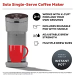 Solo Style 2-in-1 Single-Serve Coffee Maker – Brews K-Cup Pods or Ground Coffee – Compact Design, Fast Brewing & Programmable Mug Sizes – Ideal for Home/Office