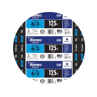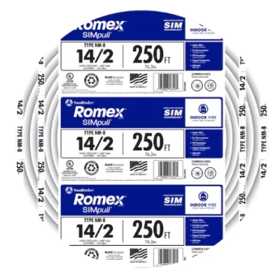 Southwire’s Romex® SIMpull® Type NM-B cable is suitable for both exposed and concealed installations in dry environments, with a maximum temperature rating of 90°C.