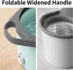FOLDABLE WIDENED HANDLE: The spin mop and bucket separate clean and dirty water has a foldable handle that can be lowered and integrated with the bucket body when not in use for saving space. The small volume of the water bucket helps to save water and facilitate storage, while with the widened handle, it can be easily carried anywhere. Widening the handle can distribute the force on the hands, help reduce hand pressure, and prevent hand fatigue.