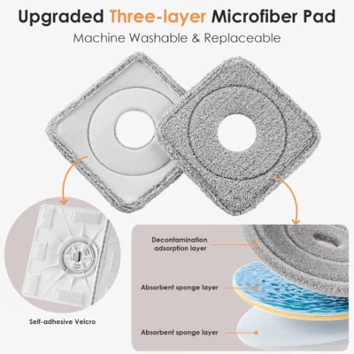 2 REPLACEABLE ULTRA-FINE FIBER MOP PAD: The mop with separate dirty and clean water uses a three-layer composite thickened nano scale fiber mop pad, and the fluff on the pad has strong adsorption force, which can absorb water and easily wipe away oil stains and bacteria, making cleaning more thorough. Mops can be used both dry and wet to wipe off various stains.