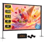 STWUI 120 Inch Outdoor Projector Screen with Stand, Portable 16:9 4K HD Movie Projection Screen for Indoor and Outdoor Use, Lightweight Design with Carry Bag for Backyard Movie Nights