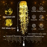 Super Long 131Ft 1280 LED Christmas Curtain Lights, Warm White Waterproof Fairy String Lights with 8 Modes Memory Timer.