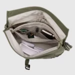 - Organized Interior – Large zippered mesh pocket with accessory pockets and key fob lash, plus a front pocket for bulky items