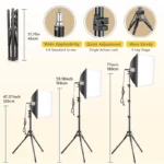 Each softbox is supported by a sturdy, height-adjustable tripod stand made from high-quality aluminum alloy. With independent locking knobs and a reliable structure, the stands remain stable and secure during use, resisting scratches and minor impacts to ensure lasting durability.