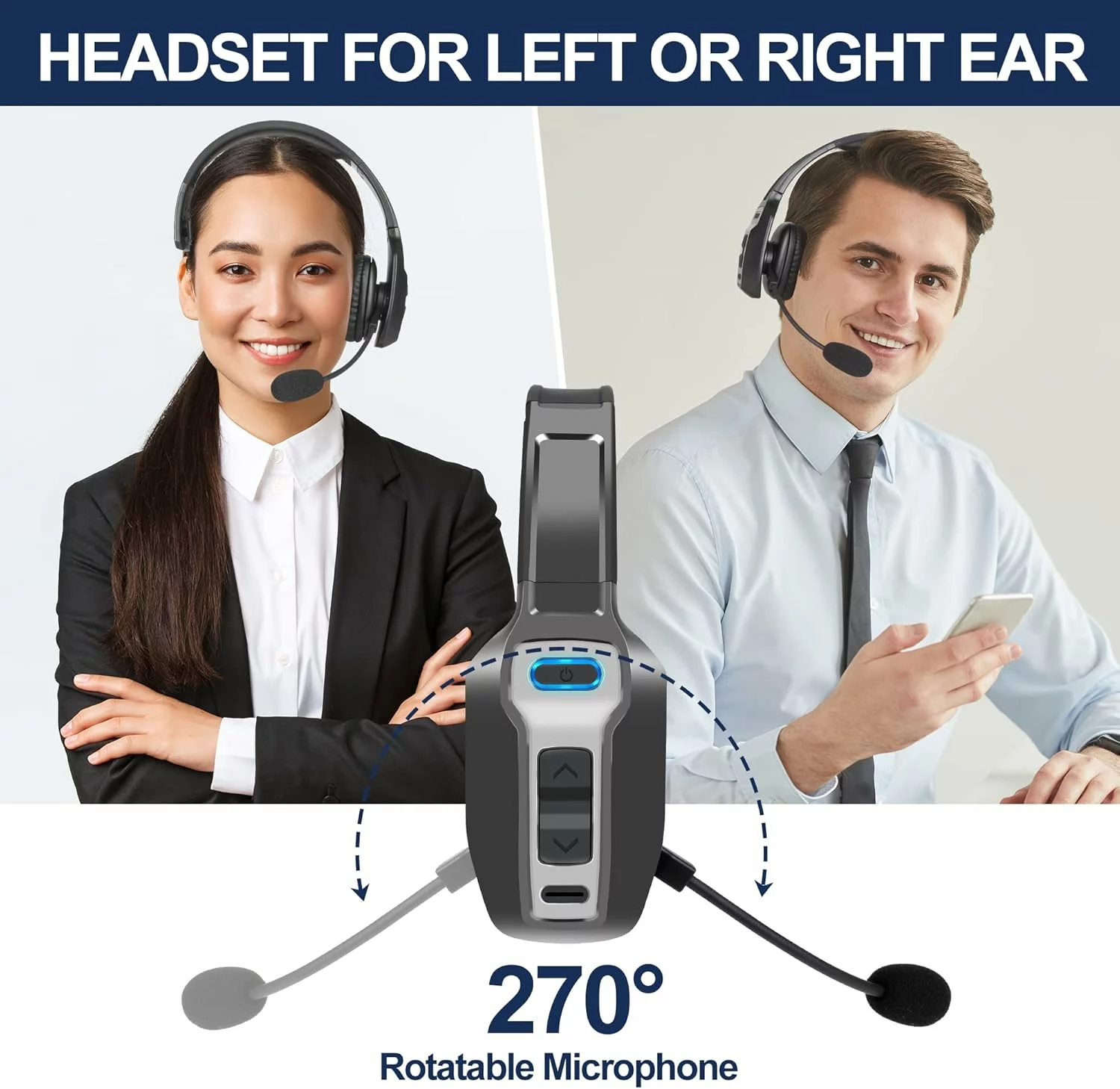 Trucker Bluetooth Headset V5.2 Wireless with Mic, AI Noise Canceling On-Ear Headphone with Mute for Office Driver