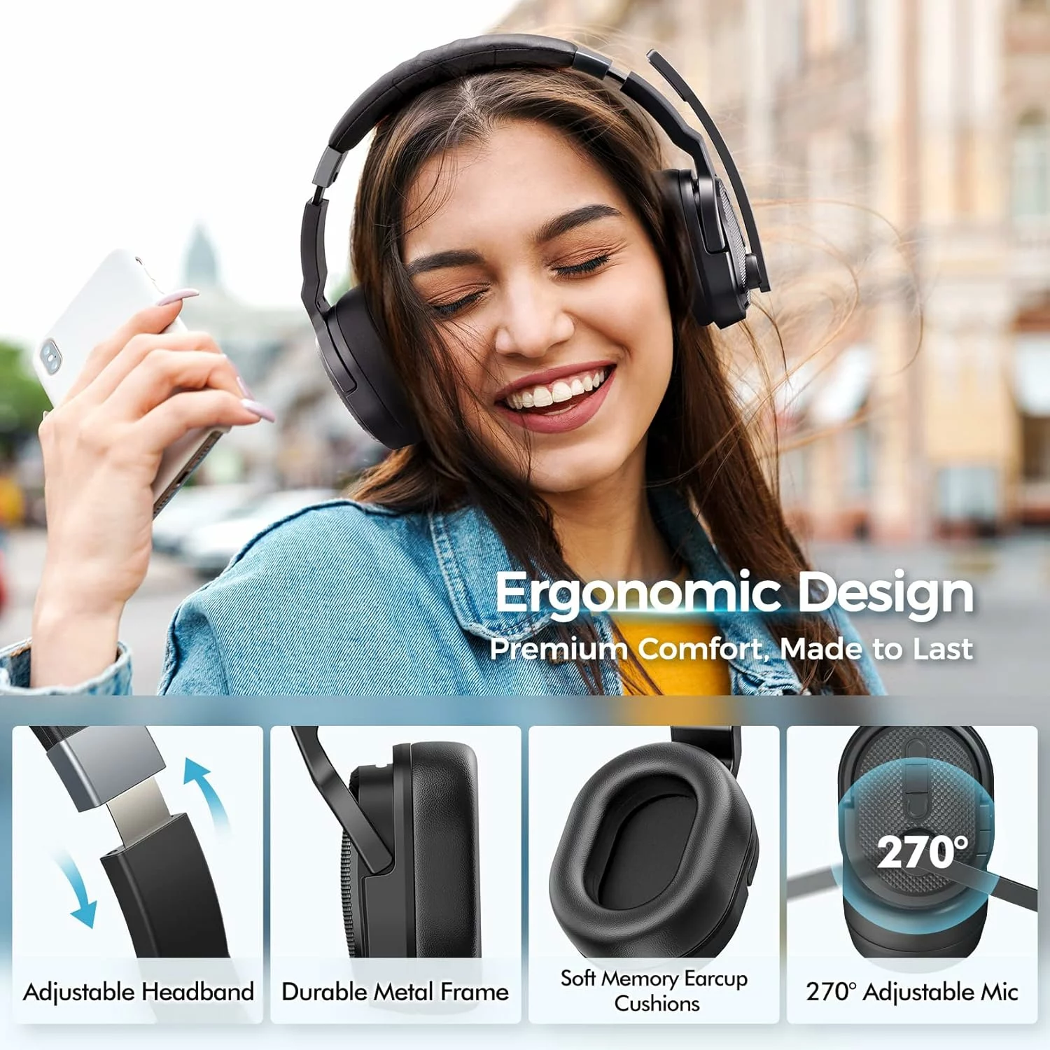 Stable Bluetooth Connection: This headset with microphone for pc delivers reliable Bluetooth 5.0 technology, maintaining strong compatibility with PCs, smartphones and other devices. It provides consistent connectivity without interruptions during calls, meetings or music playback