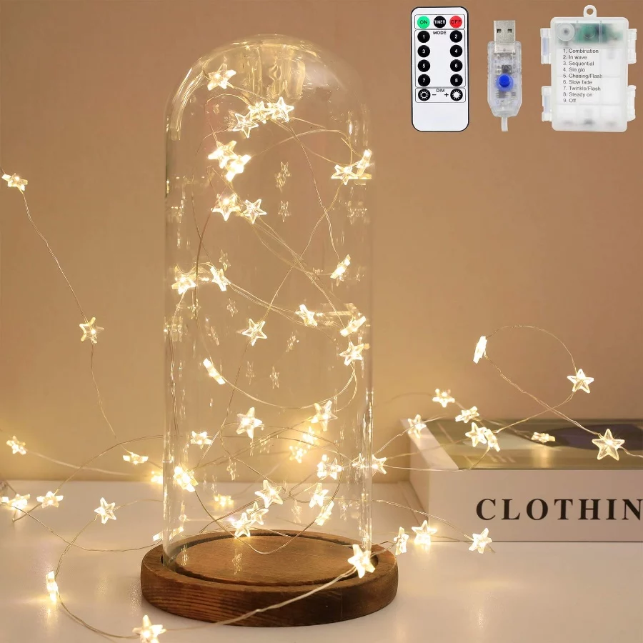 HIGH QUALITY – Star string light is made of high quality silver-plated copper wire that can be bent so you can DIY it at will. Warm white light can create cozy lighting and warmth, making the space more comfortable and relaxed.