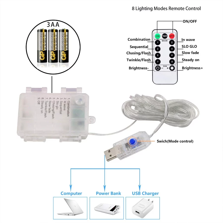 2 POWER SOURCES – The decorative lights are powered by USB or 3 x AA batteries (battery not included). Battery-powered Fairy Lights can be placed anywhere, through USB power supply to avoid the trouble of replacing battery. Adopt LED lights, energy saving and environment friendly, supporting longer lighting.