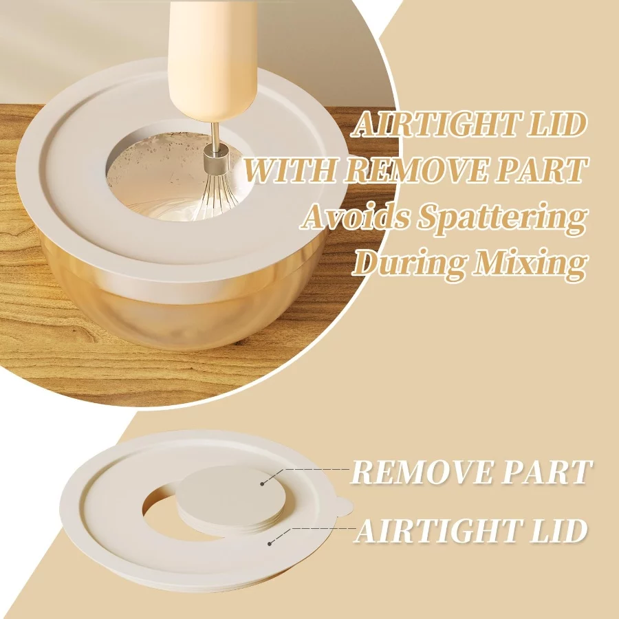 AIRTIGHT LIDS & 3 GRATER ATTACHMENTS : The airtight lids that come with this mixing bowl set make it easy to store food and leftovers without worrying about spills or leaks. 3.5qt had a removable lid inside the main lid, for adding contents or pairing it with your blender without removing the entire lid to prevent splash. This large mixing bowl set comes with 3 different grater attachments (slicing/grating/shredding) just shred or slice right into the bowl! Perfect for preparing salads.