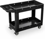 HEAVY DUTY PLASTIC: utility carts are consistently built with durable, heavy-duty plastic to ensure that this 2 shelf rolling cart with wheels can withstand heavy loads and long-term use. Strength and stability are ensured, along with corrosion resistance for long life for this plastic work cart with wheels.