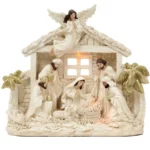 Valery Madelyn Nativity Set, 10.6 Inch Figurines With LED Lights, Elegant White Gold Scene For Indoor Christmas Decorations.