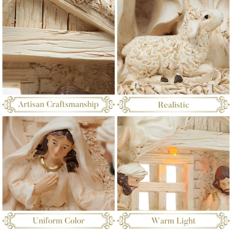 LED lights – This decoration of Jesus’ birth features a warm yellow lighting effect. Simply turn on the switch to illuminate and release its unique charm at night