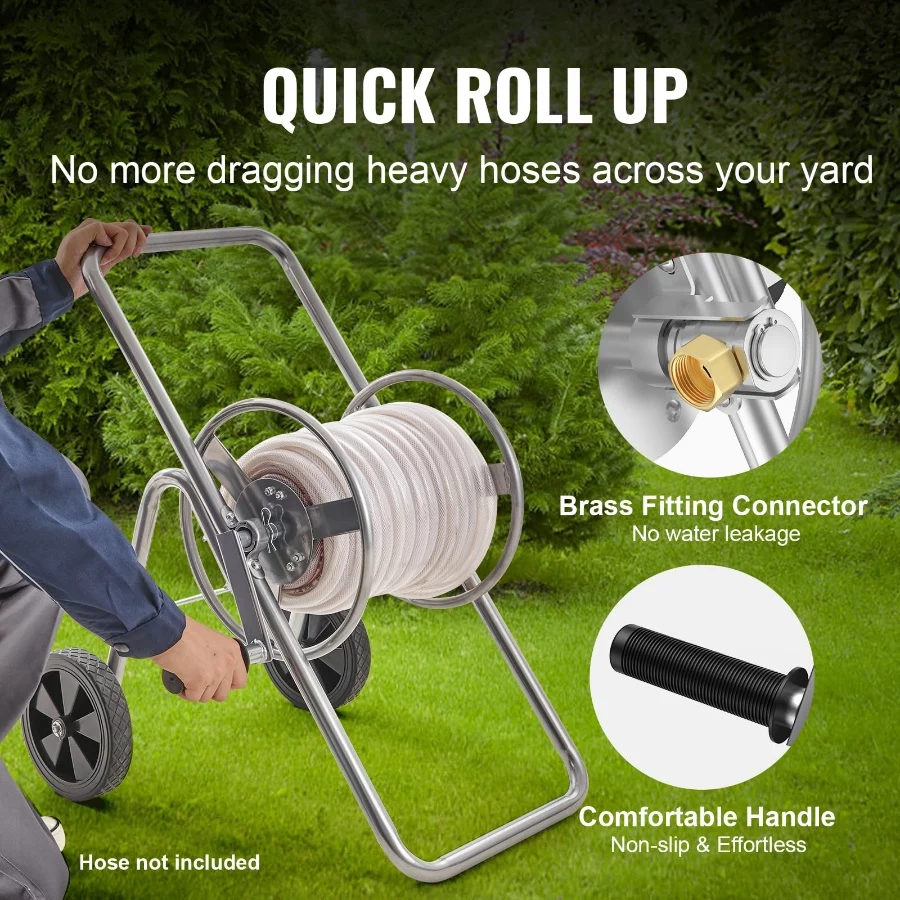 Heavy-duty Steel: The hose reel cart has a sturdy steel structure that ensures long-lasting performance. It is equipped with a weather-resistant coating and brass fittings, which make it resistant to rust and leakage. These features ensure that your hose reel cart remains sturdy even in challenging conditions.