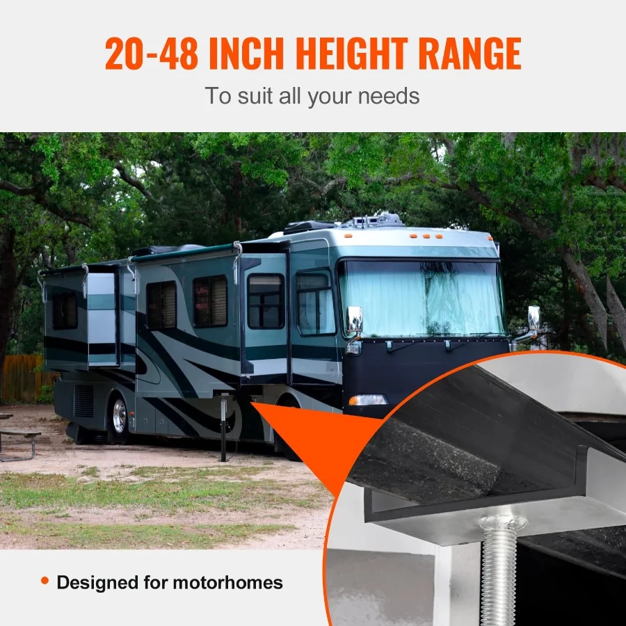 Versatile Compatibility: Our camper slide out support jacks provide an adjustable height range of 20-48″/500-1230 mm, making it suitable for various RVs with different ground clearances. Enjoy the flexibility to adapt to different RV heights effortlessly.