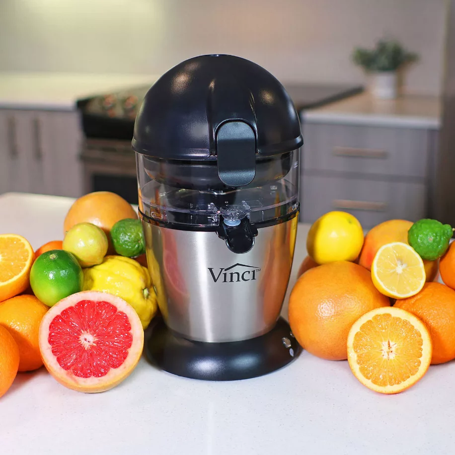 Vinci Housewares Hands-Free Electric Citrus Juicer – 12-oz Reservoir, Low & High Pulp Filters, One-Touch Operation for Fresh Lemon, Orange & Grapefruit Juice