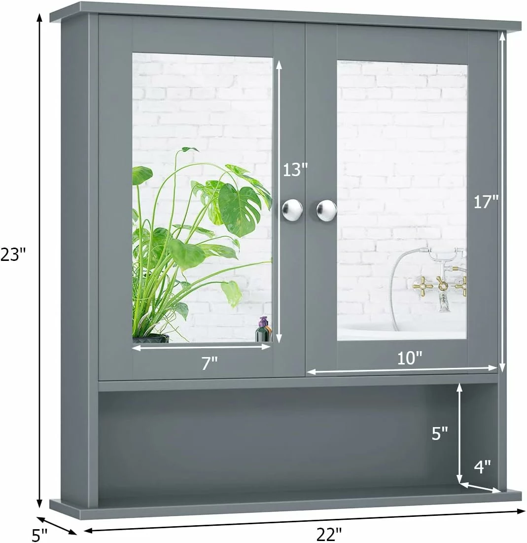 Wall Mounted Bathroom Mirror Cabinet Wooden Gray Cabinet with Shelf Corner Storage for Medicine, Towels photo review