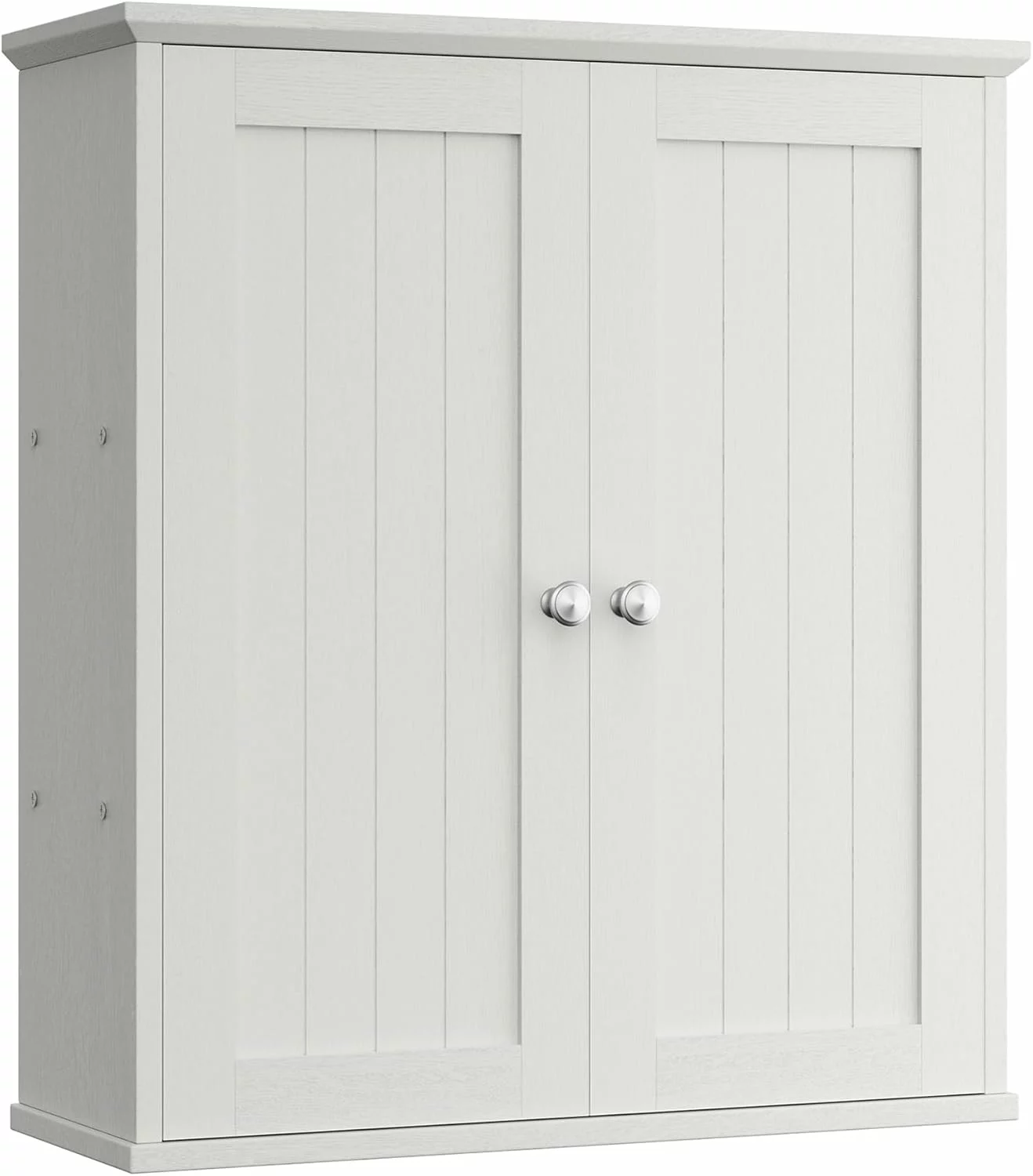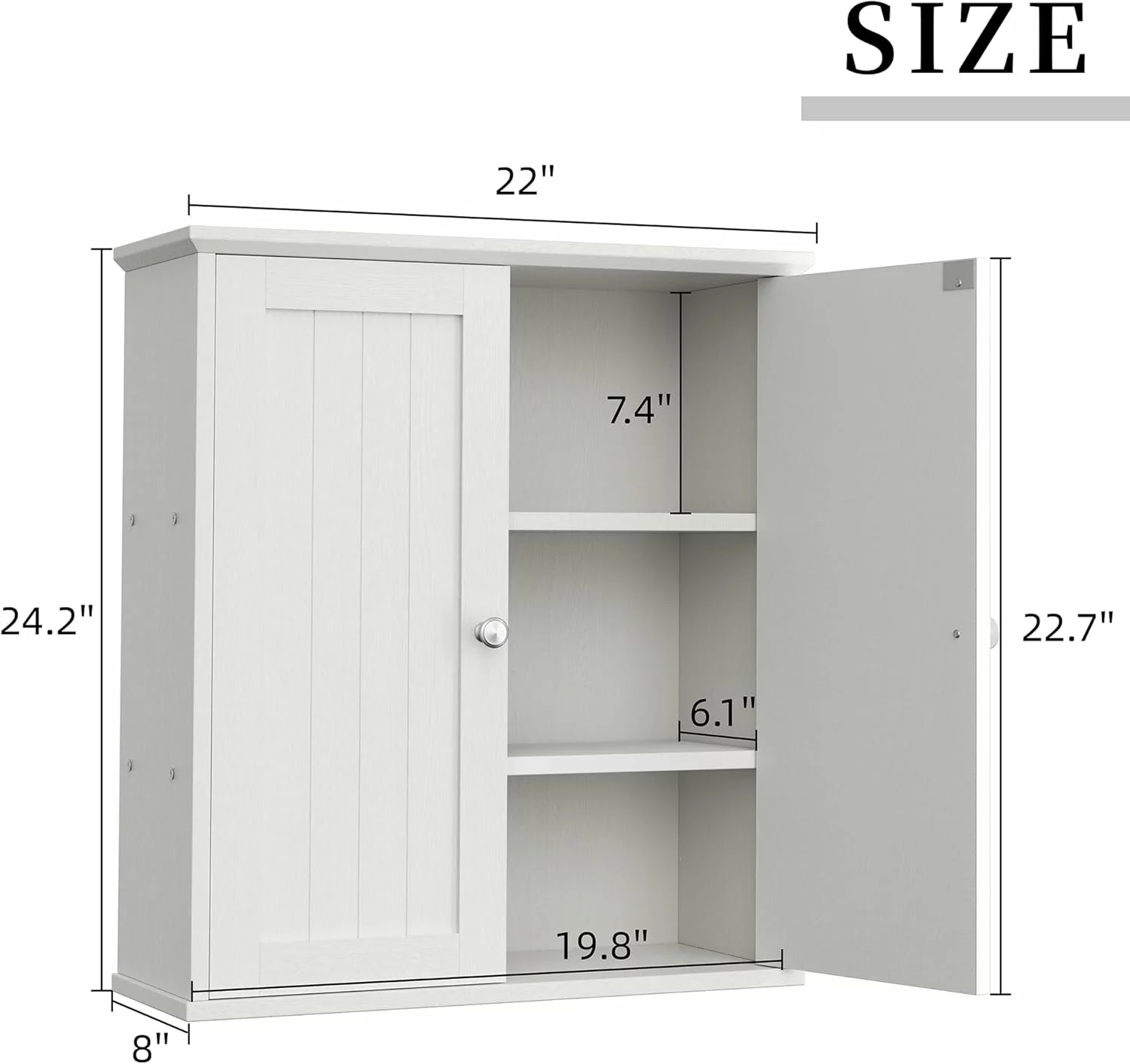 Wall Mounted Bathroom Storage Cabinet, 2 Door Medicine Cabinet Over Toilet with 3-Tier Shelves, Solid White photo review