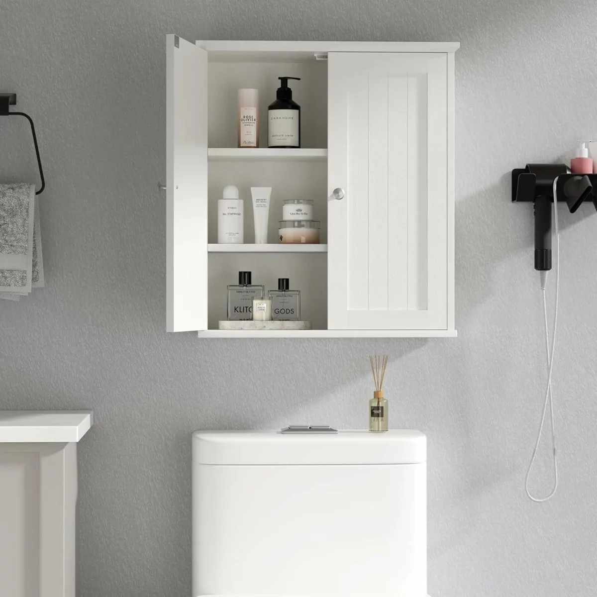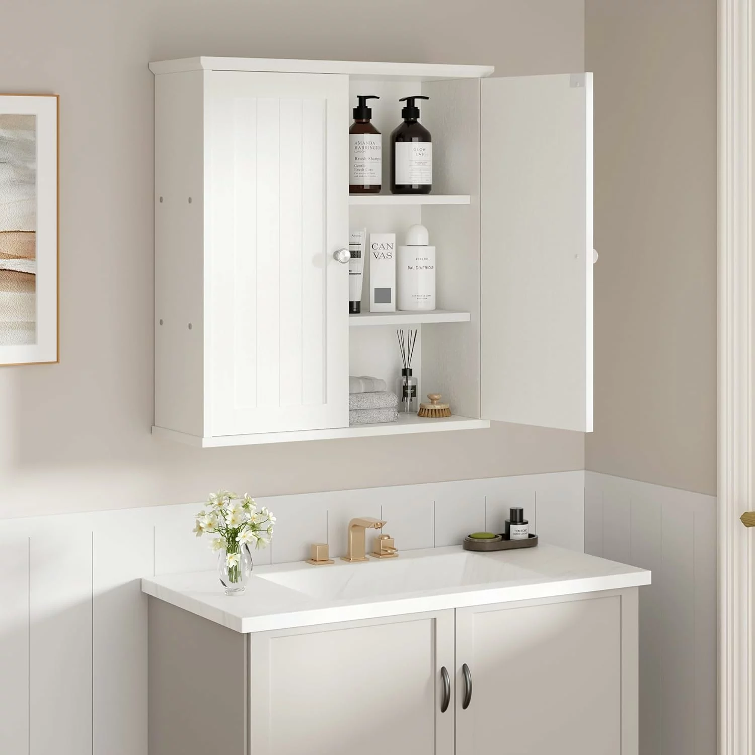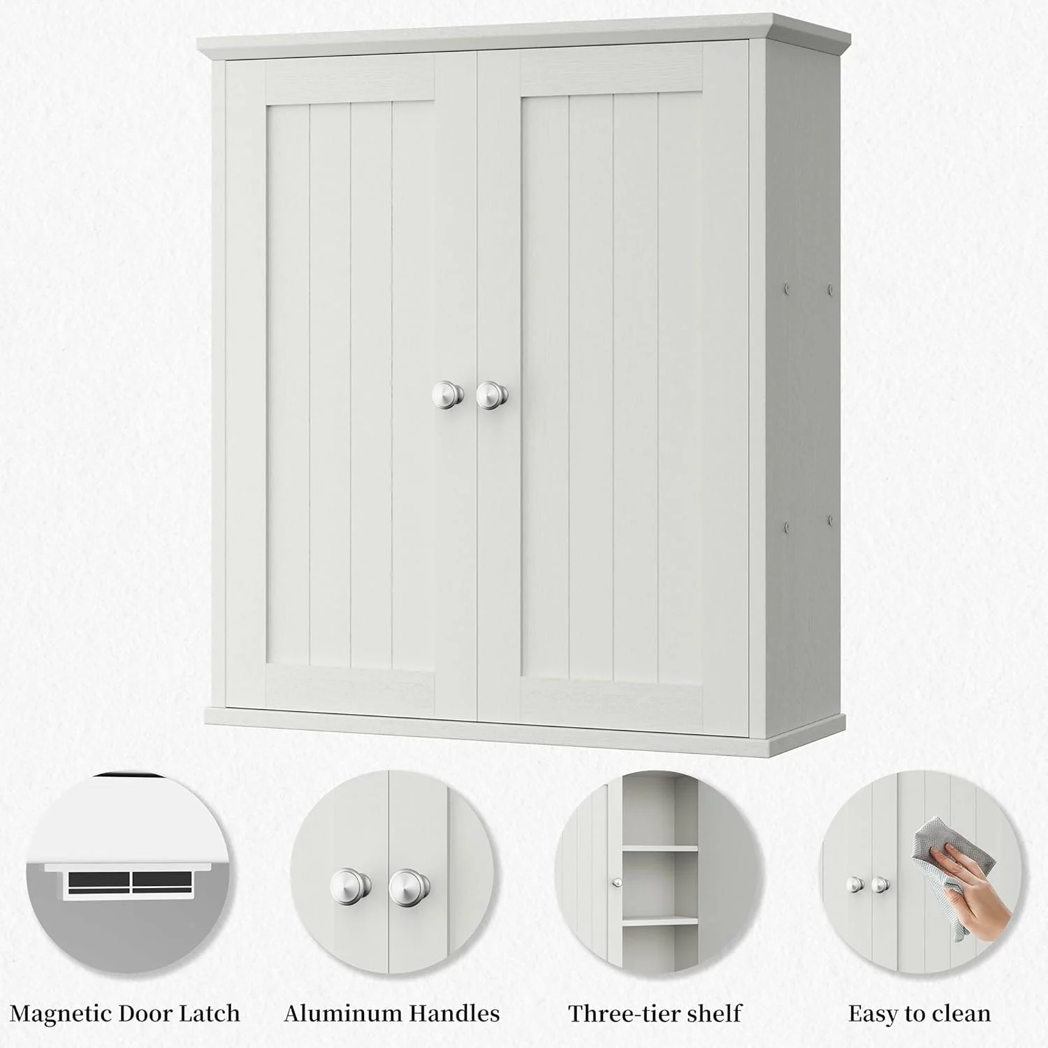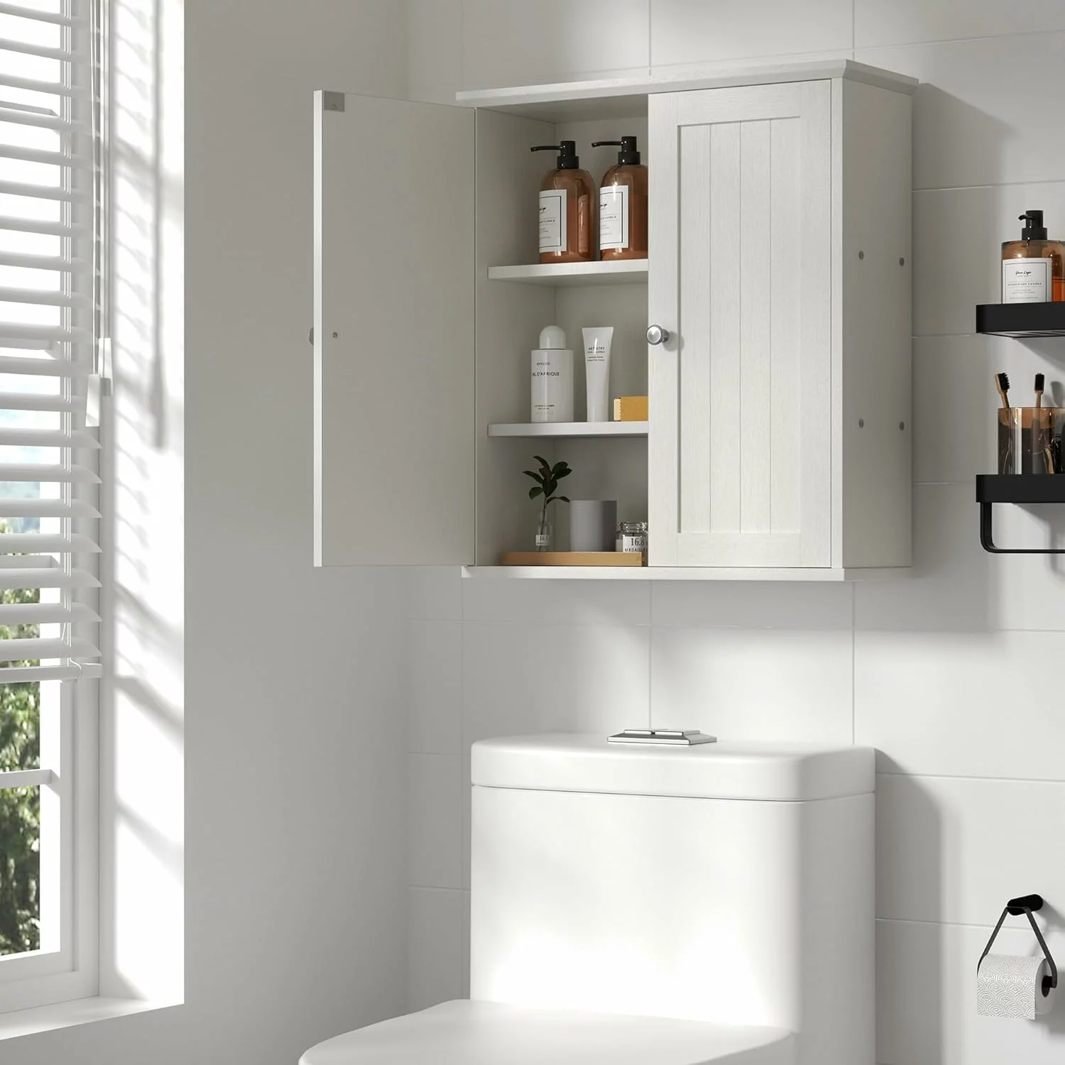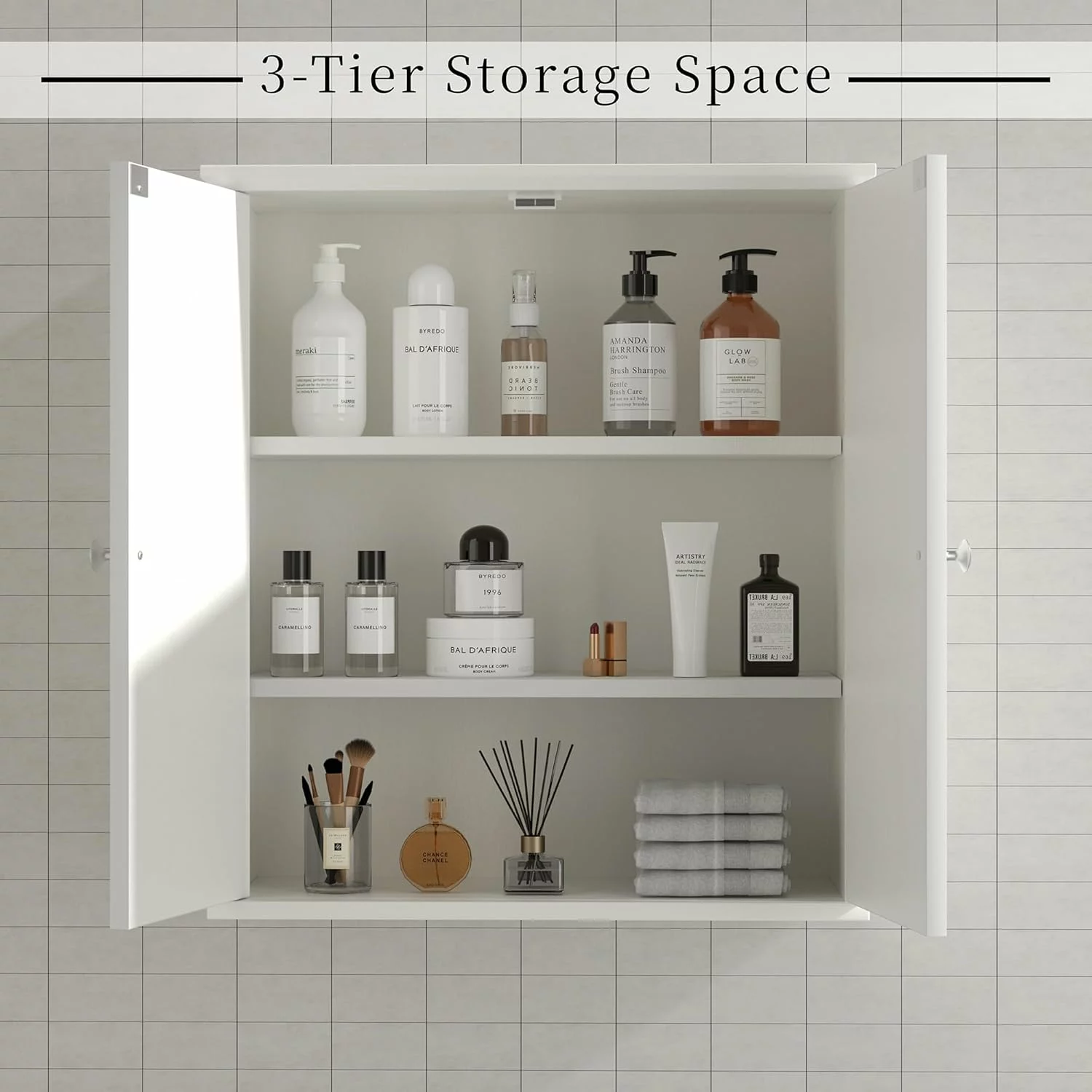 Wall Mounted Bathroom Storage Cabinet, 2 Door Medicine Cabinet Over Toilet with 3-Tier Shelves, Solid White