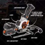 Includes 24-tooth carbide blade, dust tube, hex key, 2.0Ah battery, and charger