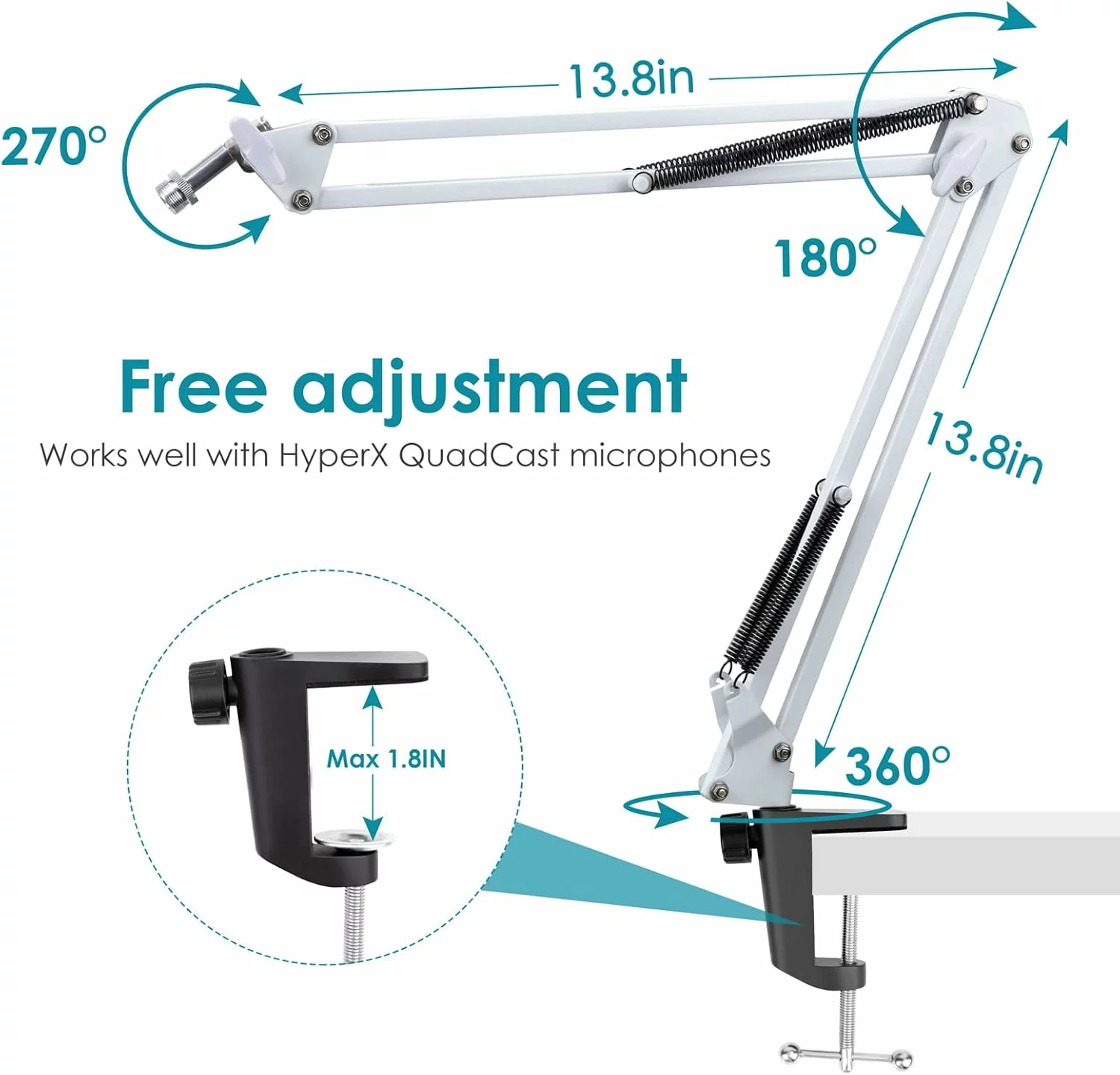White Boom Arm for HyperX QuadCast S, Adjustable Mic Arm Stand Compatible with HyperX QuadCast White Microphone