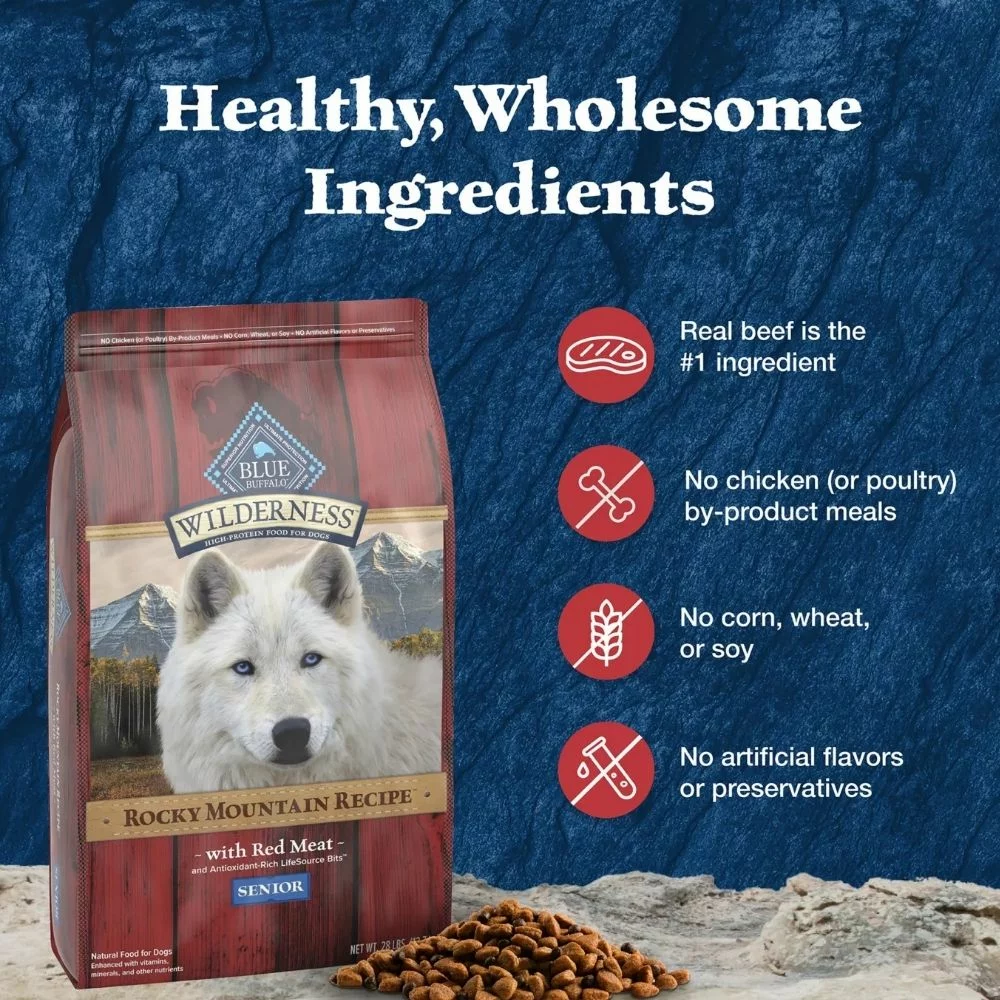 Wilderness Rocky Mountain Senior 7 Plus Dry Dog Food – Red Meat Recipe for Strength and Joint Support, 22 lb Bag