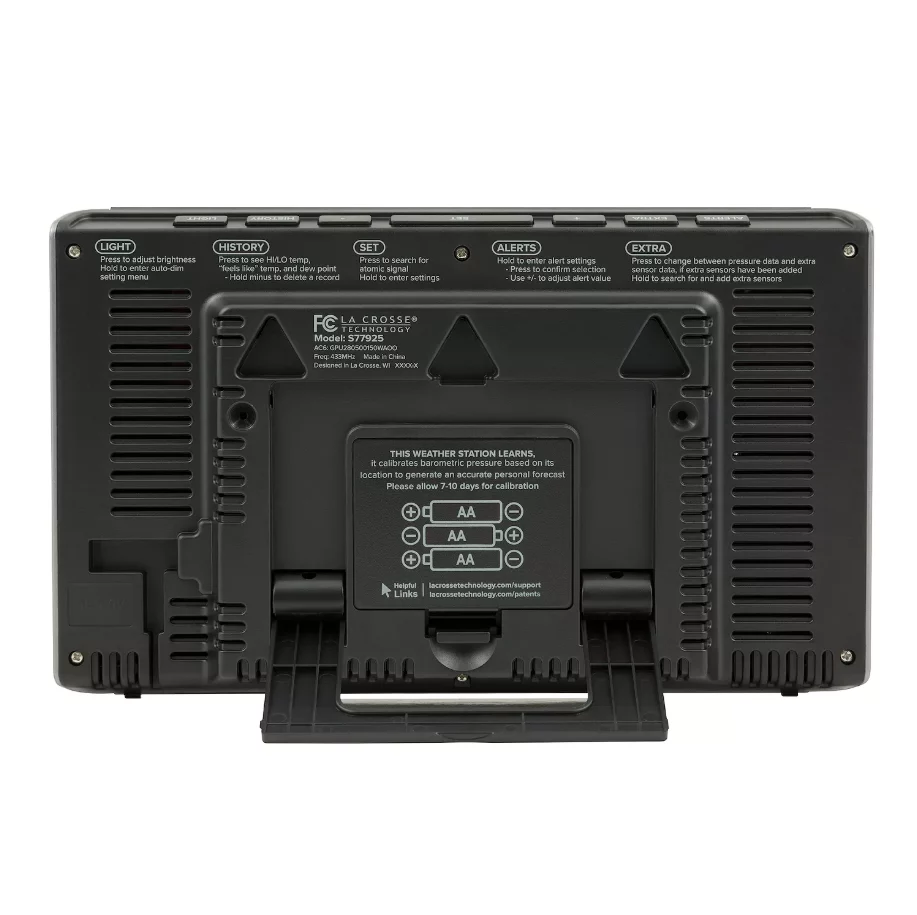 - Customizable indoor/outdoor temperature alerts (HI/LO/OFF)