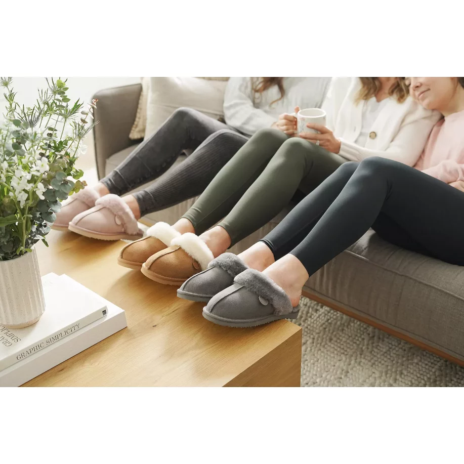 Slip into softness with these comfortable women’s Dearfoams scuff slippers.