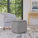 HomePop Woven Tray Top Storage Ottoman, Multipurpose Storage Footrest