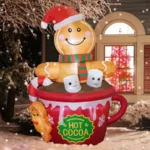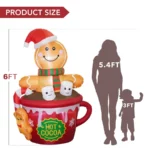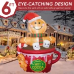 ZPISF 6FT Christmas Inflatable Gingerbread Man in Hot Cocoa Mug – Cute LED Blow Up Outdoor Yard Decoration for Garden, Lawn & Xmas Holiday