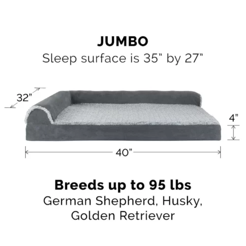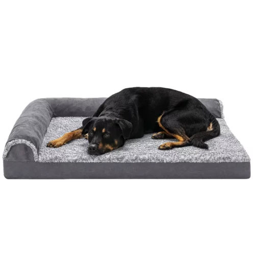 Two-Tone Faux Fur & Suede L-Shaped Chaise Orthopedic Dog Bed